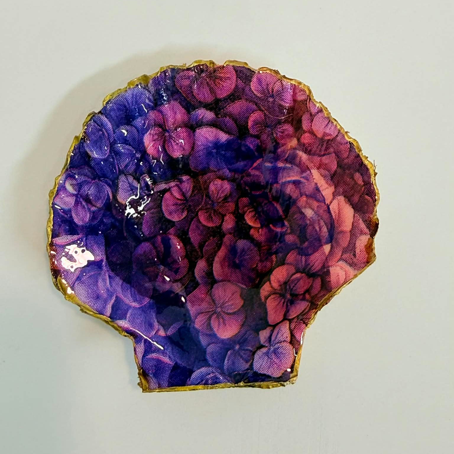 Each shell is a real organic scallop shell, meaning no two will ever be the same in size, shape, texture or character. Every design is individually created by hand, making each piece completely unique — just like the shell itself.