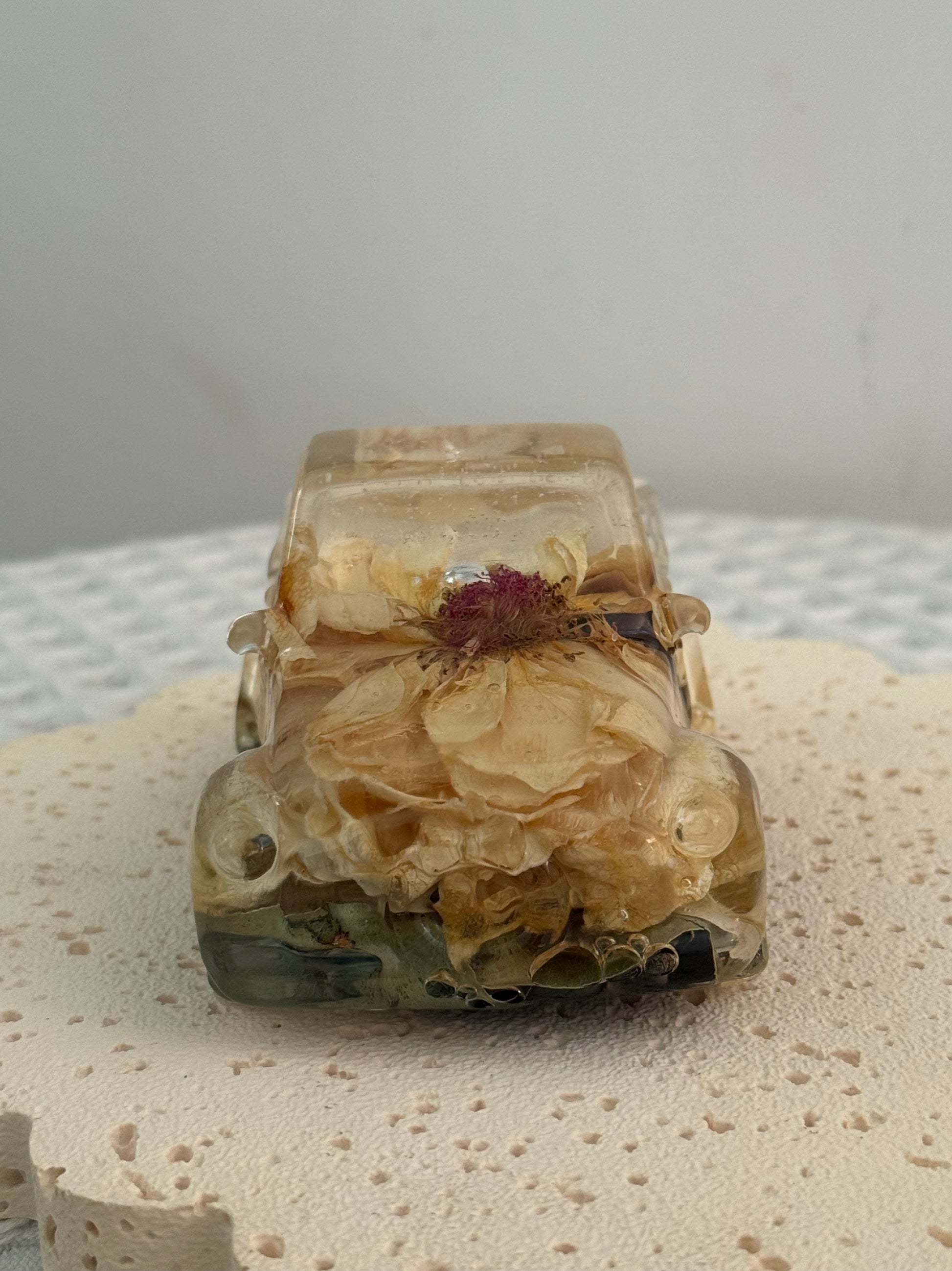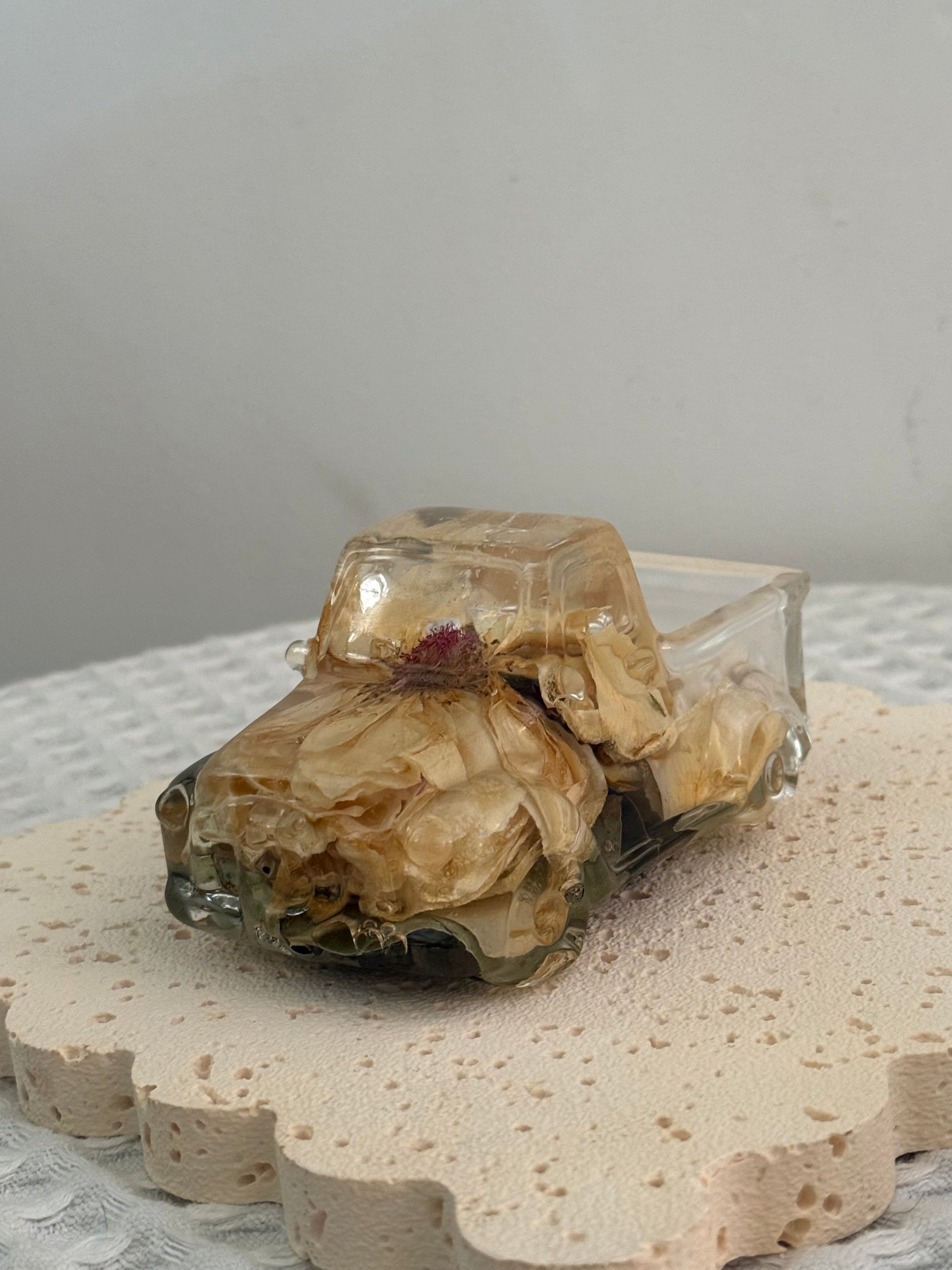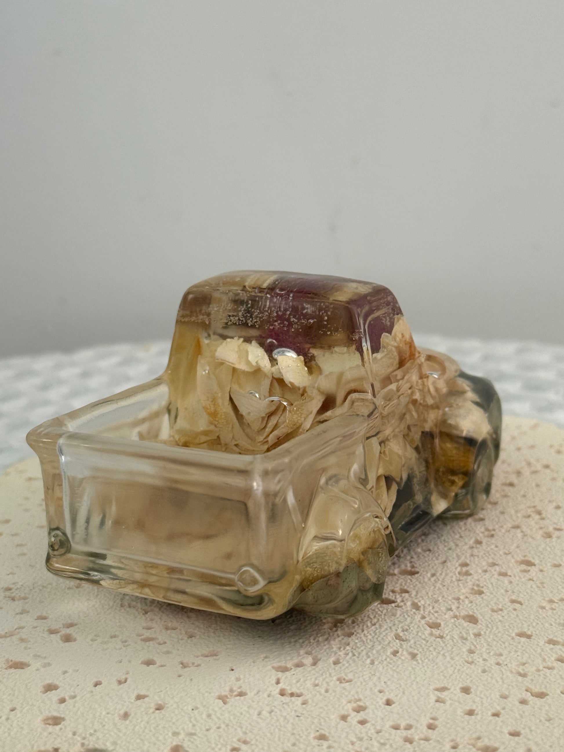 This resin ute includes both floral preservation and resin casting.