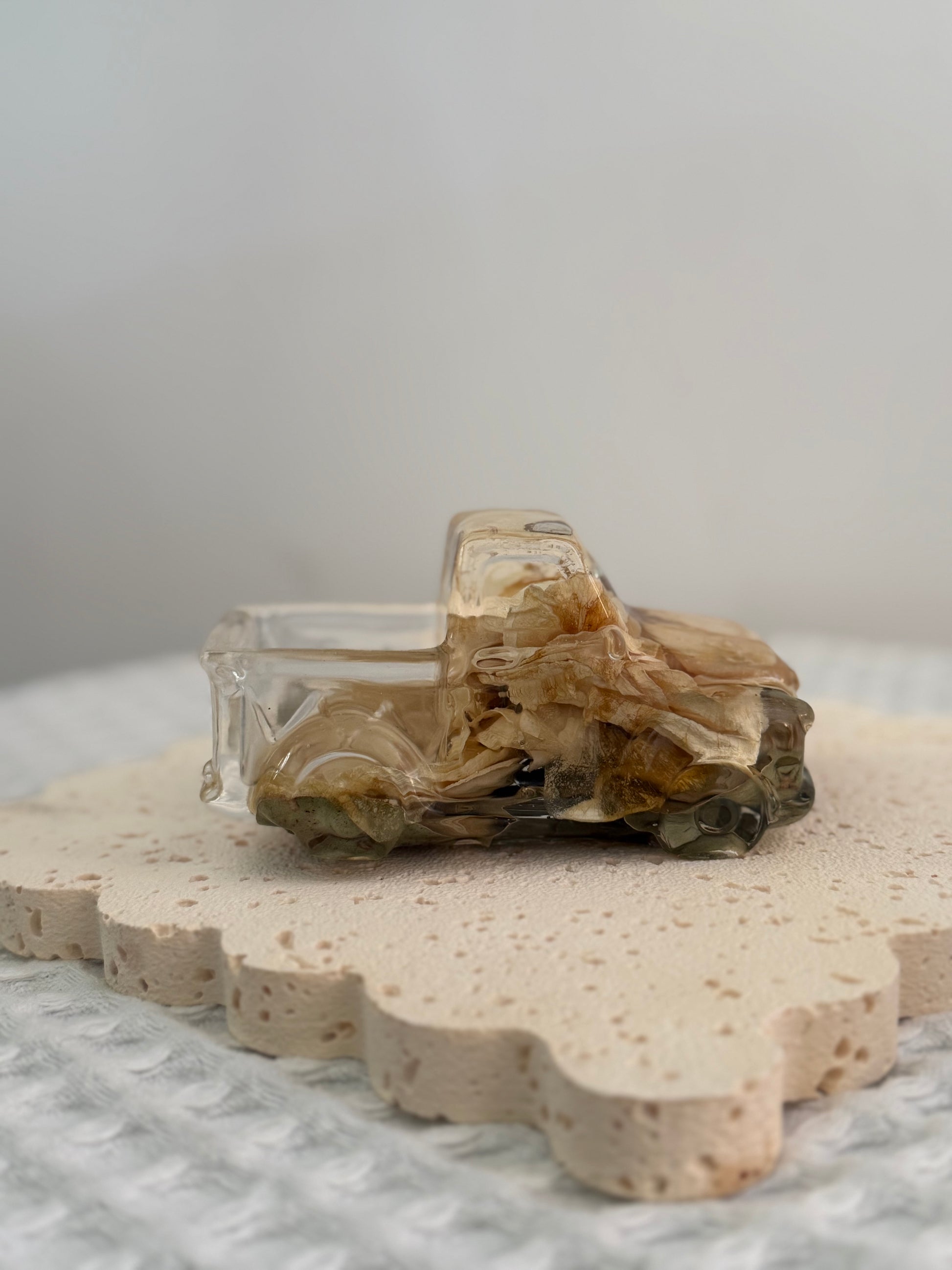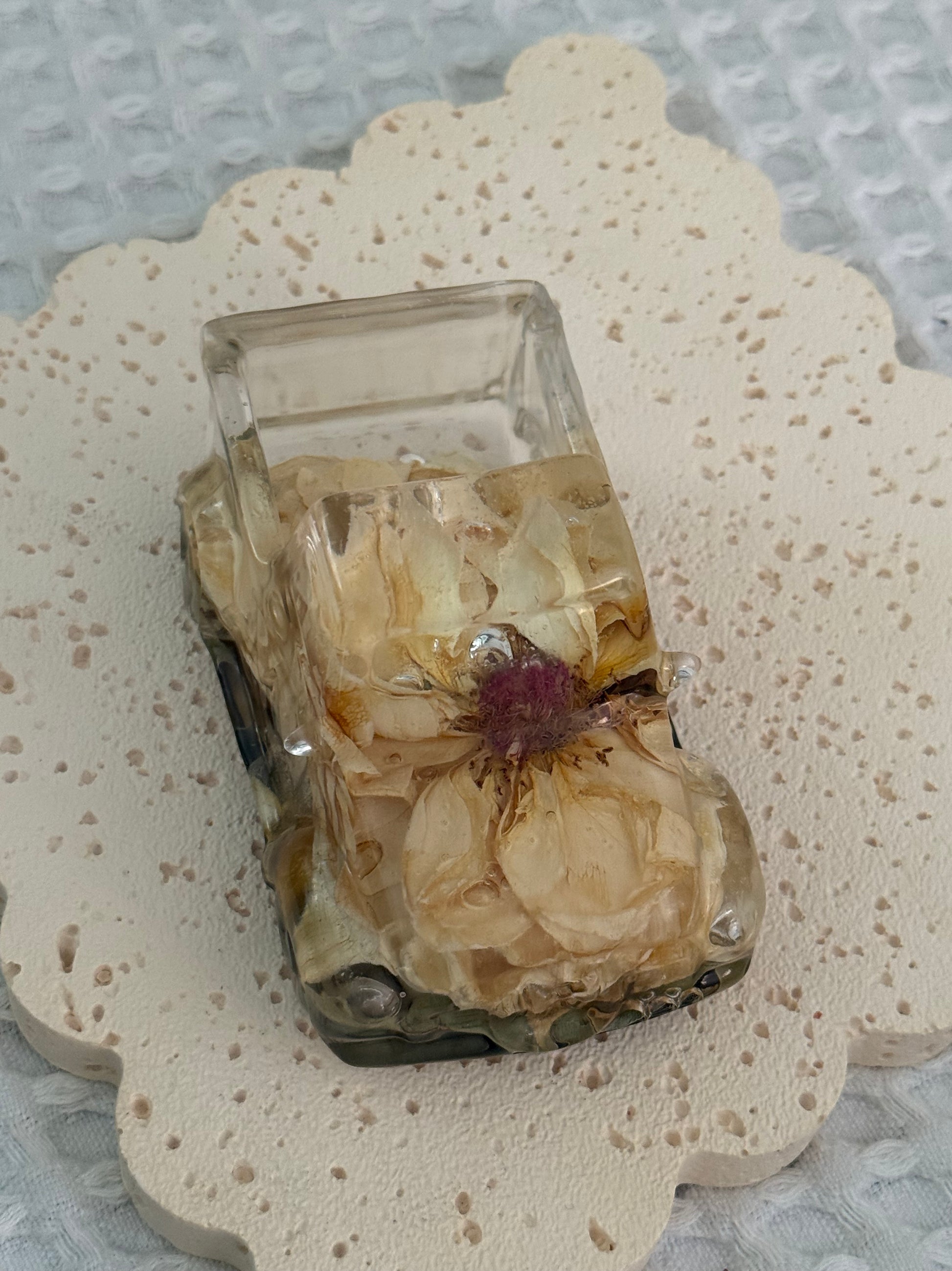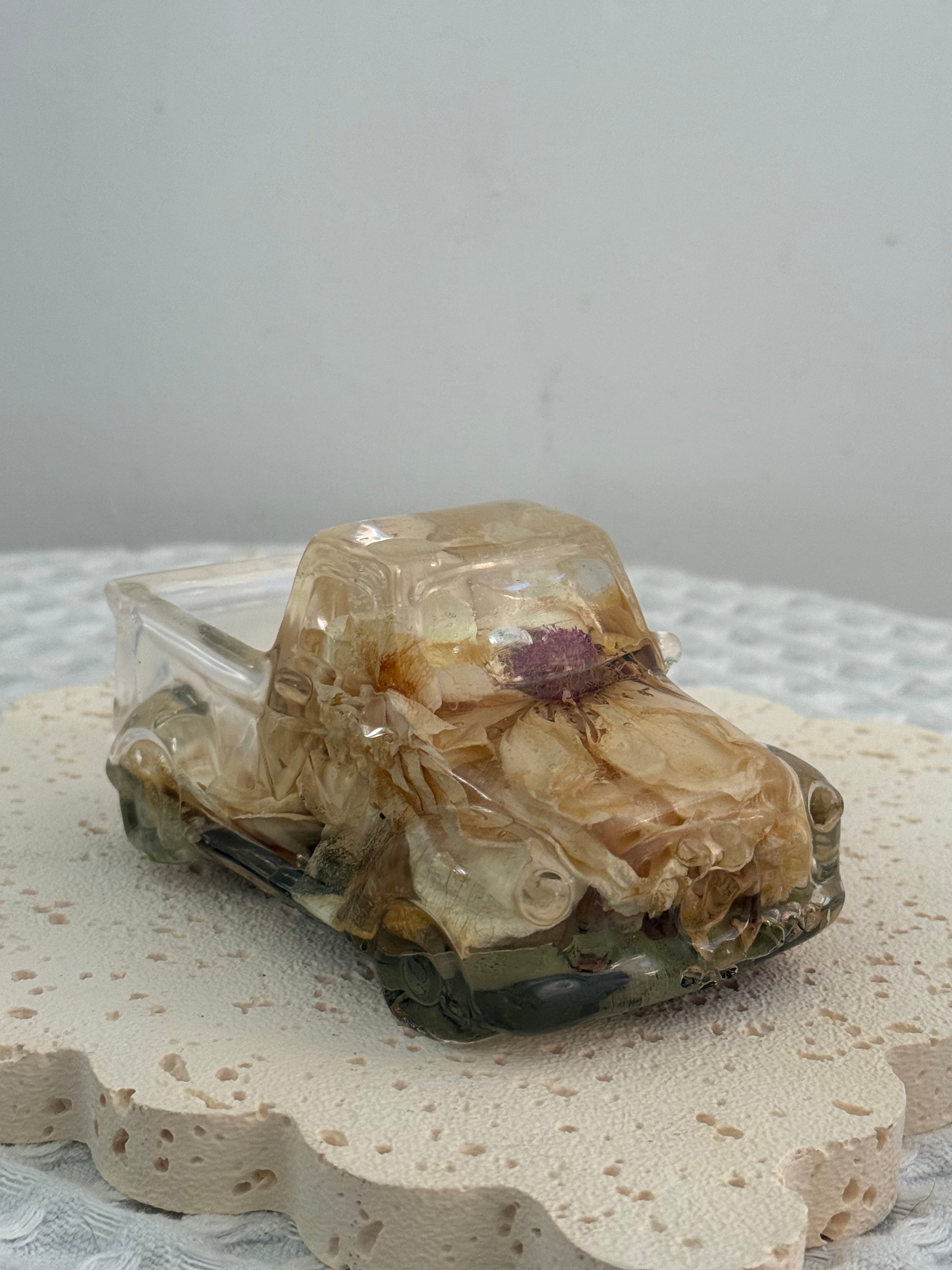 This resin ute includes both floral preservation and resin casting.